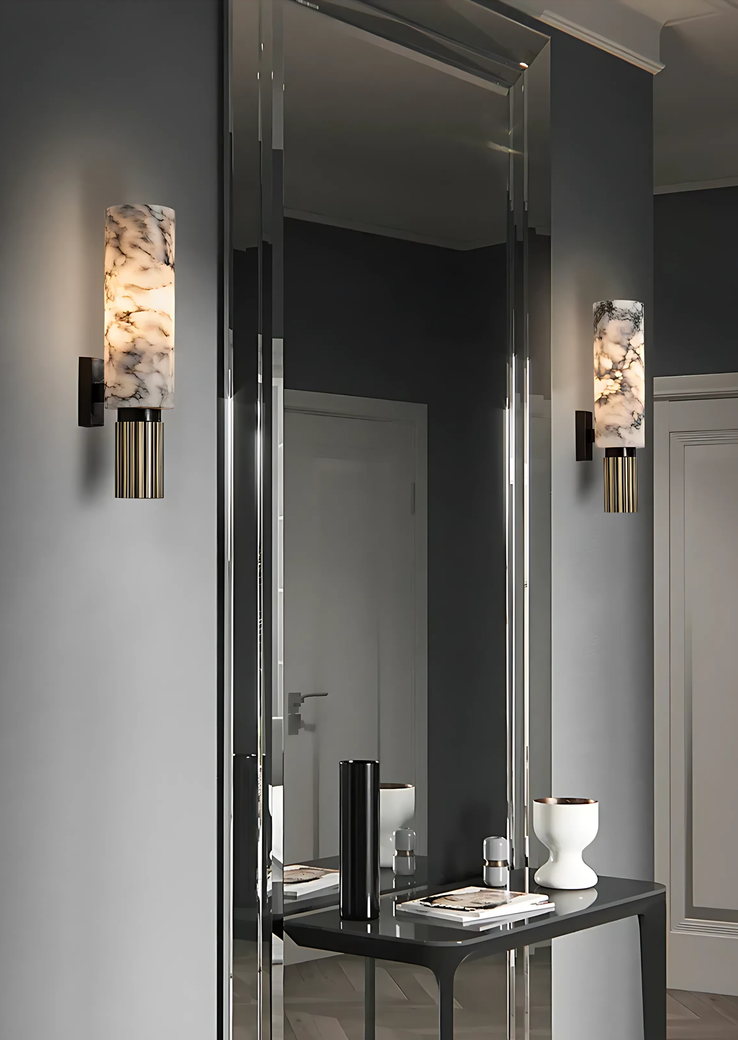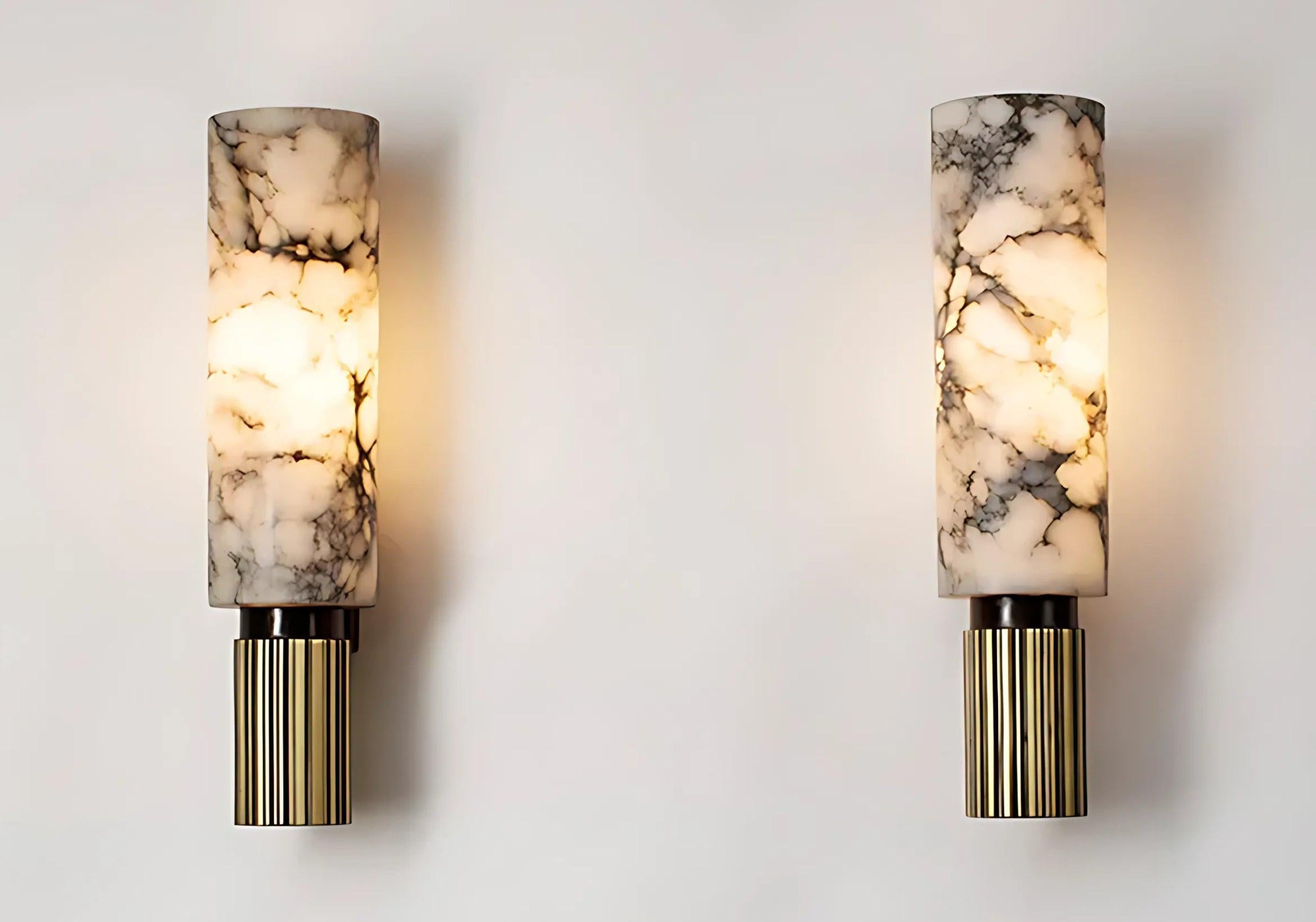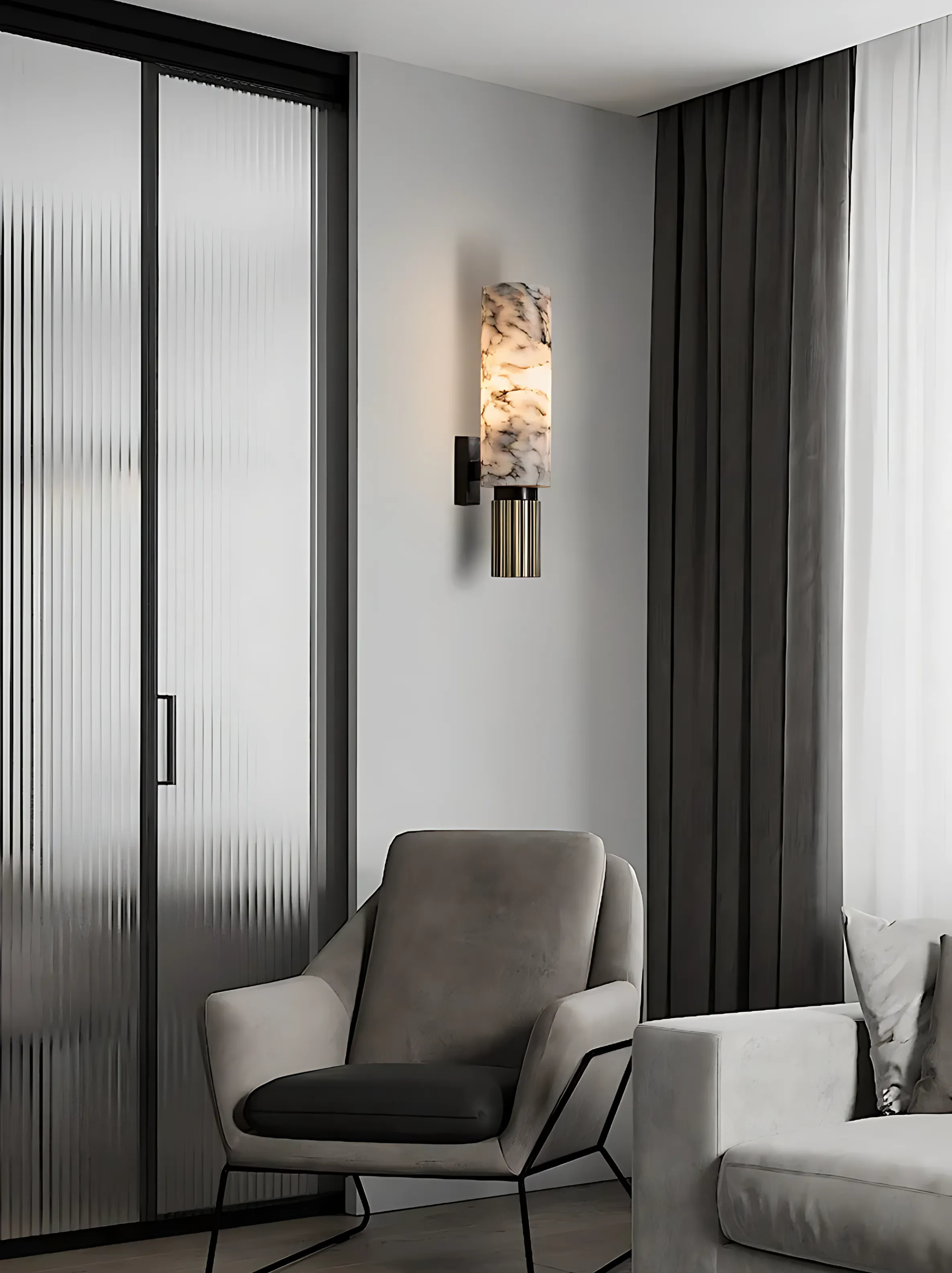 This exquisite wall light, carved from solid marble, brings a touch of opulence to any space.